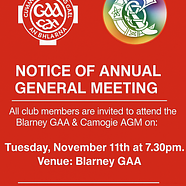 *** Notice of Annual General Meeting***All club members are invited to attend the Blarney GAA ...
