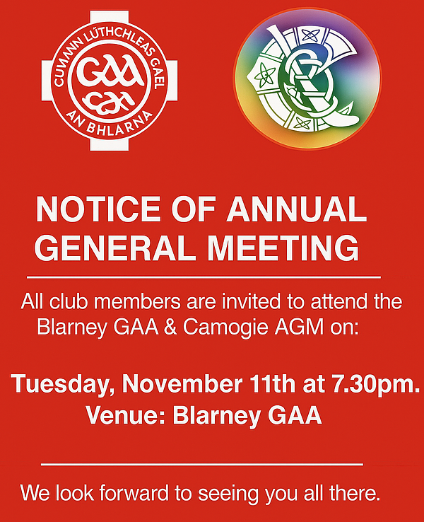 All club members are invited to attend the Blarney GAA & Camogie AGM on: