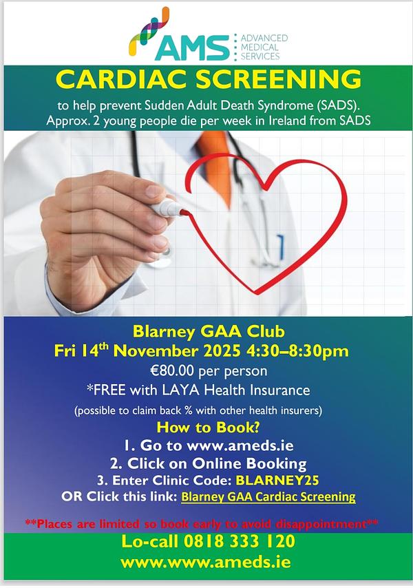 To facilitate cardiac screening on Fri, 14th November, the clubhouse will be closed to the public from 2-9pm. Screenings are by appointment only. For those attending the clinic, please go to the main door of the clubhouse where Michael from AMS will sign you in. Thank you.